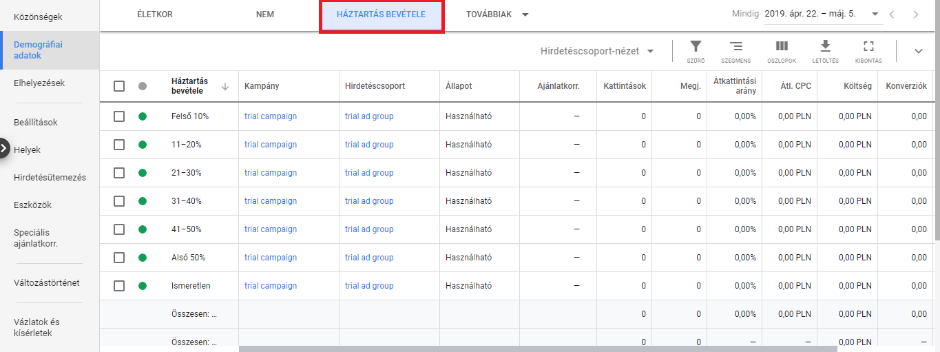 Múltbeli adatok alapján abba is bepillantást nyerhetünk, hogy melyik szegmens érdeklődik leginkább a kínálat iránt.